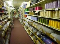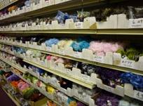 お店の2階に、リボンやヤーン売り場があります。