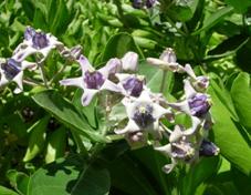 解 説:クラウンフラワーの花にはラベンダー色と白色の2色あります。 |